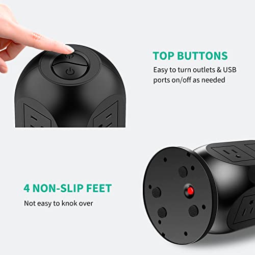 Power Strip Tower with USB Ports, AiJoy Surge Protector with 8 AC Outlets and 4 USB Ports, Fast Charging Station with Extension Cord 10FT, Office Supplies & Dorm Essentials